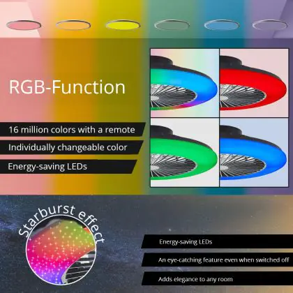 Brilliant Salerno Ventilator Plastik Metall Schwarz 36W 4700lm - 830-865 CCT+RGB | 485mm - Fernsteuerung Dimmbar