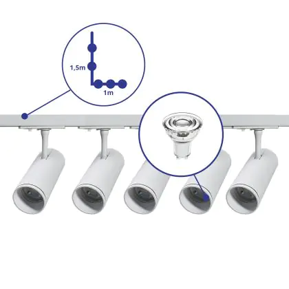 | Herstellername | Complete L shaped 1-Phase Track Set White incl. 5x Spot fixture + GU10 2700K 3W Dim - 1 x 1.5 meters | |