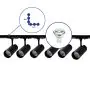 Komplettset 1-Phasen Rail L 1 x 1 Meter Schwarz | incl. 6x Spot + GU10 2700K 3W Dimmbar + Abschlusskappe, Stromanschluss und L -Verbinder