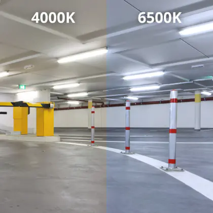 - Farbtemperatur (Kelvin): Die Ausführungen der Feuchtraumleuchte Pro von Budgetlight können in den Farbtemperaturen Kaltweiß (4.000 K) und Tageslichtweiß (6.500 K) bestellt werden.