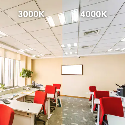 Mit einem Wert von 3.000 Kelvin strahlt das Budgetlight LED Panel Louvre Excell G2 ein warmweisses Licht aus und erzeugt so im Raum eine Wohlfühlatmosphäre für konzentriertes Arbeiten.
