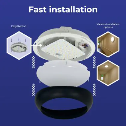 LED-Wand- und Deckenleuchte Pro V2 Weiß 12/16/20W 2400lm - 830-840-865 CCT | 325mm - IP65 - Not 3H + Ring Schwarz
