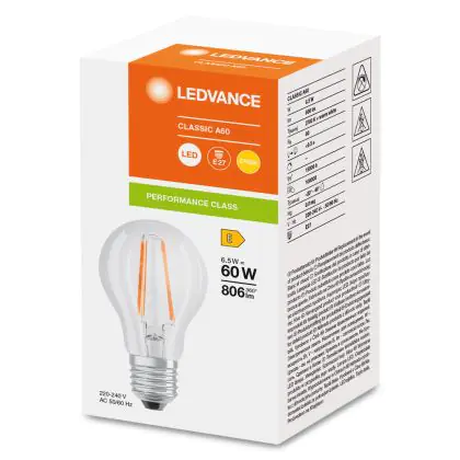 Ledvance Classic LED E27 Birne Fadenlampe Klar 6.5W 806lm - 827 | Ersatz für 60W