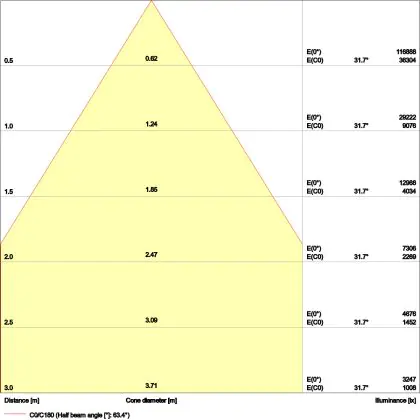 Der Abstrahlwinkel bezeichnet den Winkel, in dem das Licht aus der Lichtquelle ausgestrahlt wird. Er wird in Grad (D) angegeben. Je geringer die Gradzahl des Abstrahlwinkels ist, desto kleiner ist auch der Durchmesser des Lichtkegels, den die Lichtquelle produziert.
