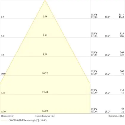 Der Abstrahlwinkel bezeichnet den Winkel, in dem das Licht aus der Lichtquelle ausgestrahlt wird. Er wird in Grad (D) angegeben. Je geringer die Gradzahl des Abstrahlwinkels ist, desto kleiner ist auch der Durchmesser des Lichtkegels, den die Lichtquelle produziert.