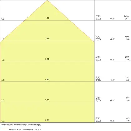 Der Abstrahlwinkel bezeichnet den Winkel, in dem das Licht aus der Lichtquelle ausgestrahlt wird. Er wird in Grad (D) angegeben. Je geringer die Gradzahl des Abstrahlwinkels ist, desto kleiner ist auch der Durchmesser des Lichtkegels, den die Lichtquelle produziert.