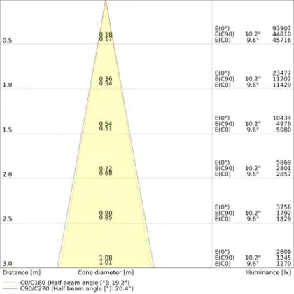 Der Abstrahlwinkel bezeichnet den Winkel, in dem das Licht aus der Lichtquelle ausgestrahlt wird. Er wird in Grad (D) angegeben. Je geringer die Gradzahl des Abstrahlwinkels ist, desto kleiner ist auch der Durchmesser des Lichtkegels, den die Lichtquelle produziert.