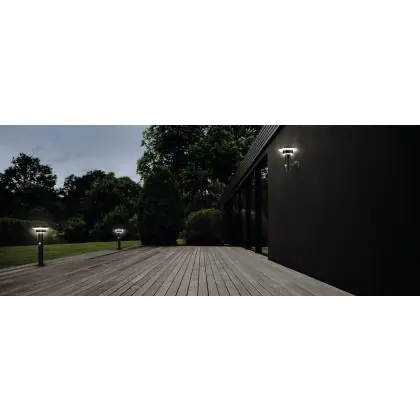 Beleuchtung mit Sensor schaltet sich nur ein, wenn ein bestimmtes Signal empfangen wird. Dies senkt die Energiekosten. Die (integrierten) Sensoren reagieren auf Dunkelheit (Dämmerungsschalter) und/oder Bewegung (Bewegungsmelder).