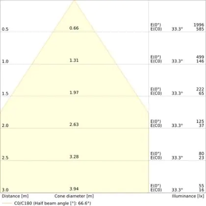 Der Abstrahlwinkel bezeichnet den Winkel, in dem das Licht aus der Lichtquelle ausgestrahlt wird. Er wird in Grad (D) angegeben. Je geringer die Gradzahl des Abstrahlwinkels ist, desto kleiner ist auch der Durchmesser des Lichtkegels, den die Lichtquelle produziert.