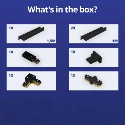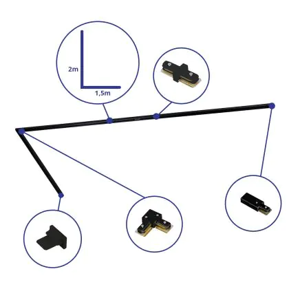 Rail Set 1-Phasen L 1,5 x 2 Meter Schwarz | incl. Abschlusskappe, Stromanschluss und L -Verbinder