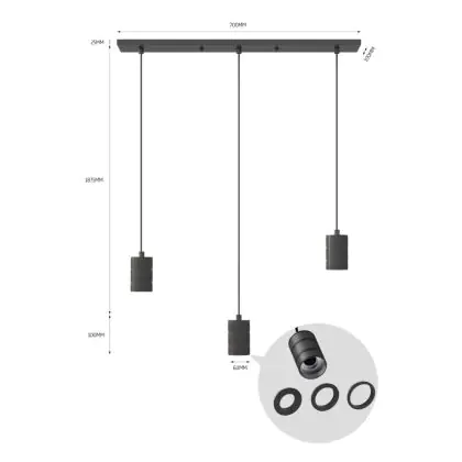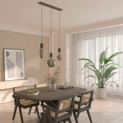 | Nom du fabricant | Calex Retro pendant lamp with ceiling plate rectangular 10x70cm, black fitting 3xE27 (2 meter cord) | |