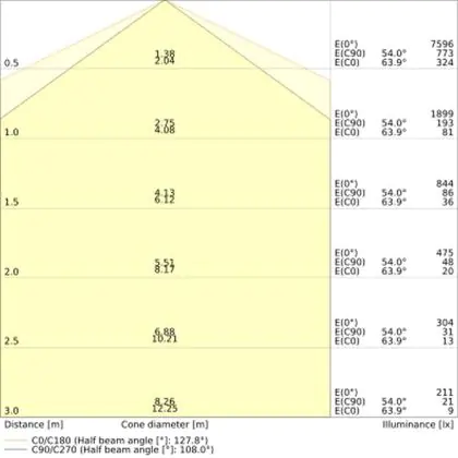 Le code couleur se compose de l'indice de rendu des couleurs (IRC) et de la température de couleur (Kelvin). Le premier chiffre indique le rendu des couleurs (1 = très mauvais rendu des couleurs, 9 = meilleure authenticité des couleurs). Le deuxième et troisième chiffre indiquent la température de la couleur. Exemple : Le code couleur "830" indique que la lampe a un bon rendu des couleurs (8) et une couleur de lumière blanche chaude (30 = 3000K). |