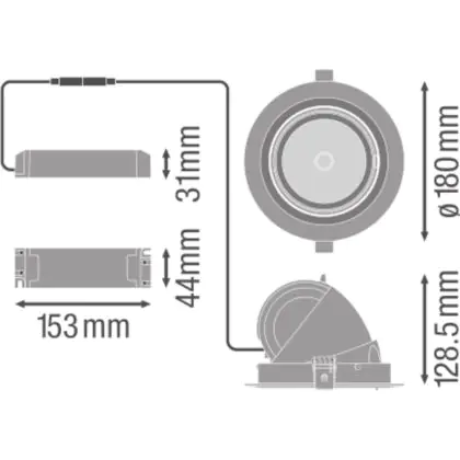 Ledvance Spot LED Vario inclinable 35W 3350lm 24D - 840 Blanc Froid | Diamètre 170mm est un spot LED encastrable. Ce luminaire est conçu pour un éclairage d’accentuation pour un usage domestique ou bien professionnel. LED Intégré, ce spot LED Ledvance en a besoin d’une place nécessaire de 170mm de largeur et mm de profondeur. Ce luminaire est compatible avec une ampoule GU10, il est important de faire attention si vous décidez de changer d’ampoule.