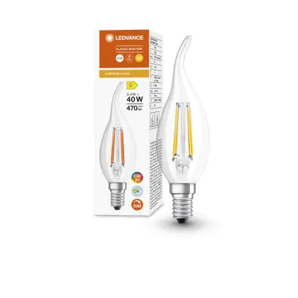 Cette ampoule Ledvance Superior Classic LED E14 Filament Torsadée Bougie Claire 3.4W 470lm - 927 | Dimmable - Meilleur rendu de couleur avec son efficacité lumineuse de lumen par watt vous permettra de profiter d’un éclairage de qualité. Avec sa durée de vie de 15000 heures, vous n’aurez pas à vous soucier de son remplacement avant quelques années.
