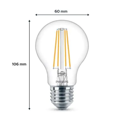 Description Lot 6x Philips Ampoule LED E27 Poire Filament Claire 7W 850lm - 840