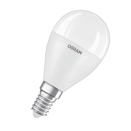 Cette ampoule Osram Classic LED E14 Boule Dépolie 7.5W 806lm - 840 | Remplacement 60W avec son efficacité lumineuse de lumen par watt vous permettra de profiter d’un éclairage de qualité. Avec sa durée de vie de 15000 heures, vous n’aurez pas à vous soucier de son remplacement avant quelques années.