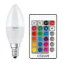 Description Osram LED E14 Bougie Dépolie 6W 470lm - 827 | RGBW - Dimmable - Télécommande - Remplacement 40W