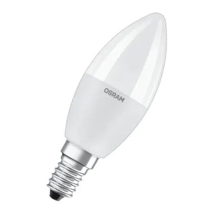 Cette ampoule Osram LED E14 Bougie Dépolie 6W 470lm - 827 | RGBW - Dimmable - Télécommande - Remplacement 40W avec son efficacité lumineuse de lumen par watt vous permettra de profiter d’un éclairage de qualité. Avec sa durée de vie de 25000 heures, vous n’aurez pas à vous soucier de son remplacement avant quelques années.