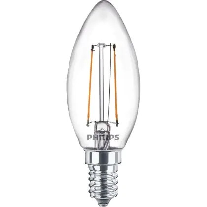 Cette ampoule Philips Corepro LED Bougie E14 Filament Claire 2W 250lm – 840 | Remplacement 25W avec son efficacité lumineuse de lumen par watt vous permettra de profiter d’un éclairage de qualité. Avec sa durée de vie de 15000 heures, vous n’aurez pas à vous soucier de son remplacement avant quelques années.