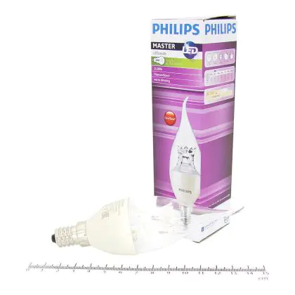 Cette ampoule Philips MASTER LED Bougie E14 Bent-tip Couronne Claire 4W 250lm - 822-827 Dim To Warm | Dimmable - Remplacement 40W avec son efficacité lumineuse de lumen par watt vous permettra de profiter d’un éclairage de qualité. Avec sa durée de vie de 25000 heures, vous n’aurez pas à vous soucier de son remplacement avant quelques années.