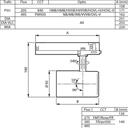 Description Philips Spot LED Sur Rail GreenSpace Evo Projecteur Blanc 31.5W 4000lm 41x80D - 830